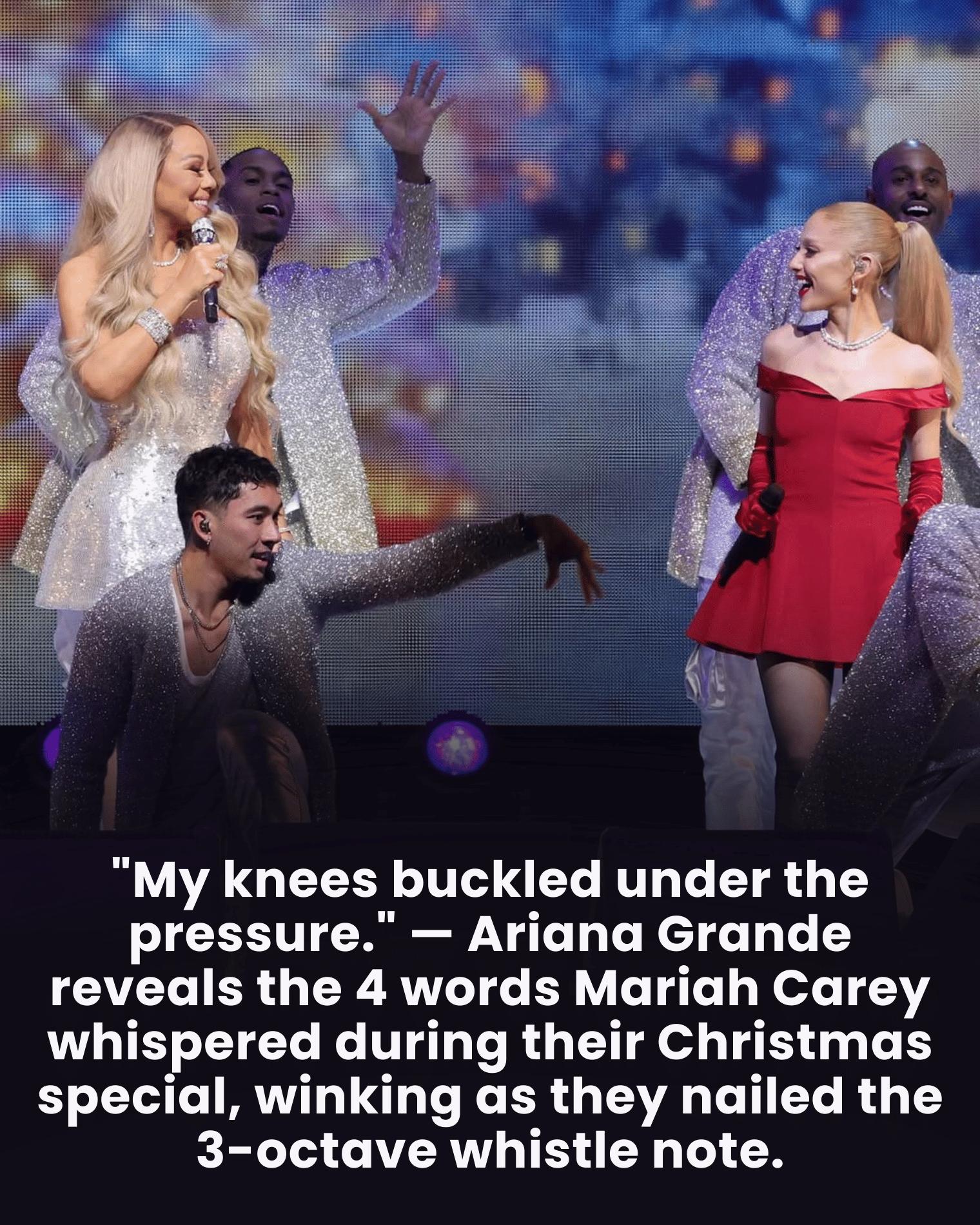 Looking back, Grande has said that the brief whisper from Carey changed everything in that moment. What began as overwhelming pressure turned into a triumphant performance that fans still revisit during the holiday season.